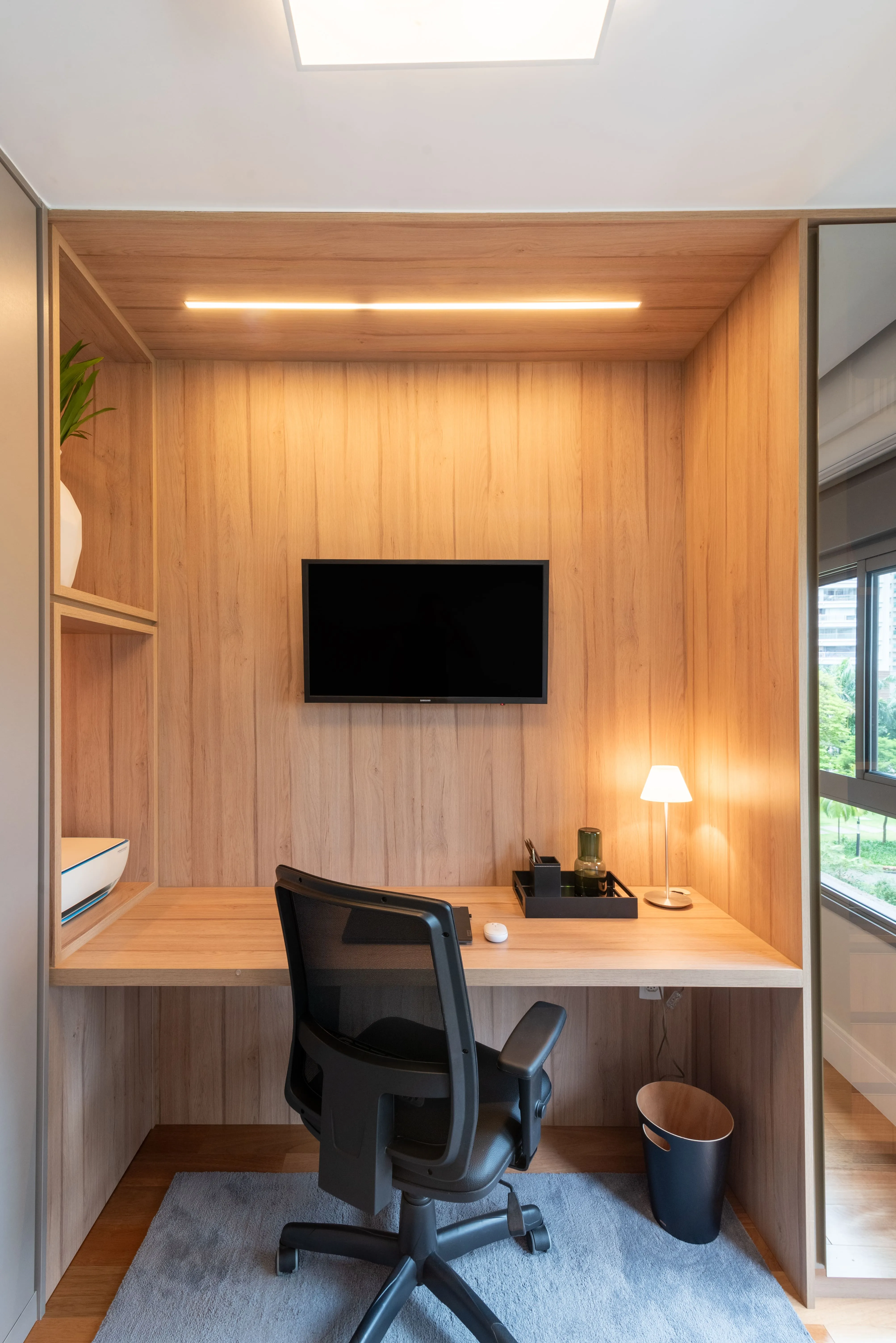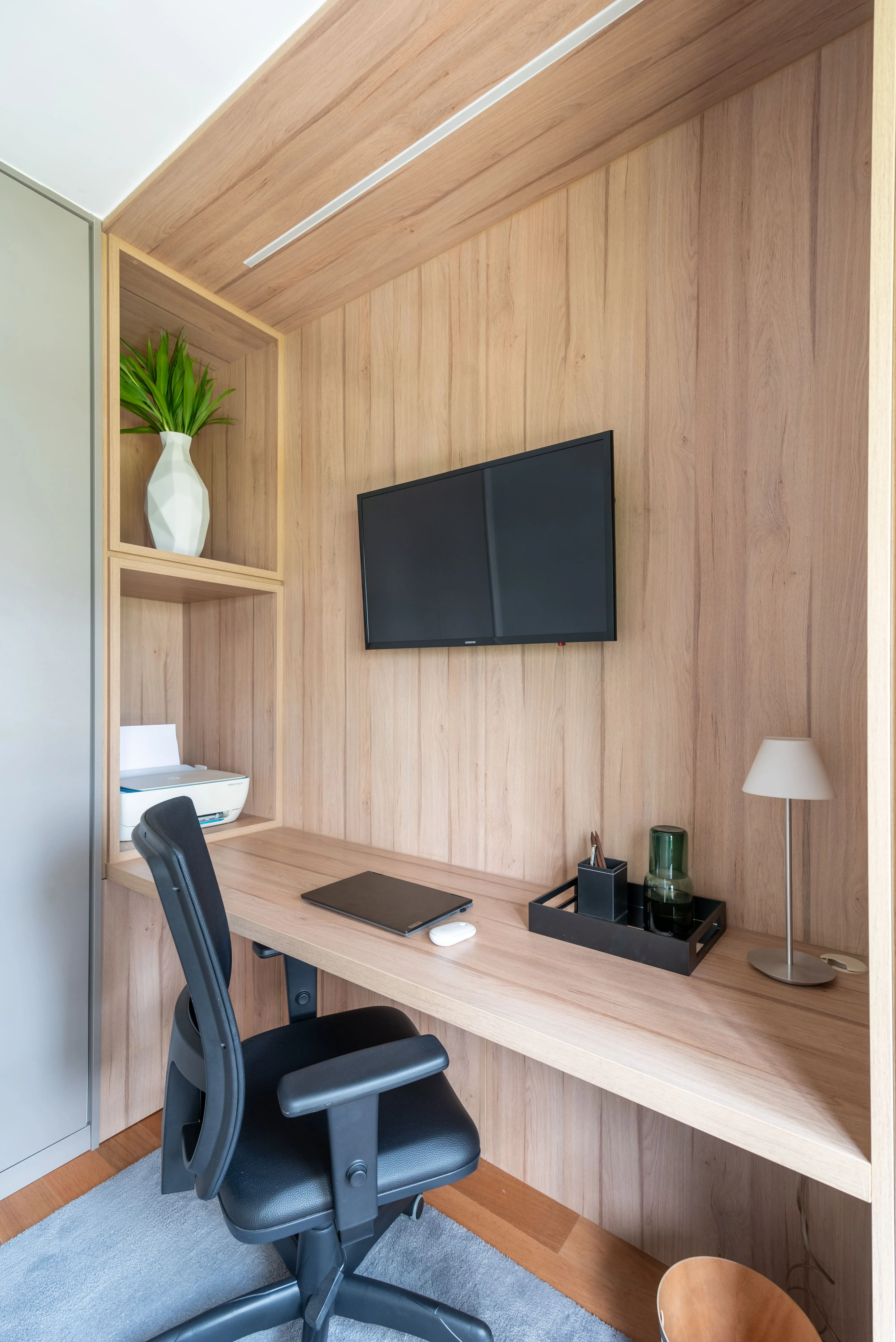 Esse cuidado também reflete uma mudança na forma como as pessoas enxergam a própria casa. Hoje, um cantinho de trabalho bem resolvido representa não apenas praticidade no dia a dia, mas também um atributo que valoriza o imóvel e reforça a ideia de uma residência pensada para diferentes momentos da vida contemporânea.